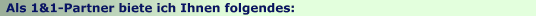 Ich bin bereits seit Jahren 1&1-ProfiSeller. In dieser Eigenschaft biete ich alle Produkte von 1&1 an und berate Sie dazu natürlich auch gern.